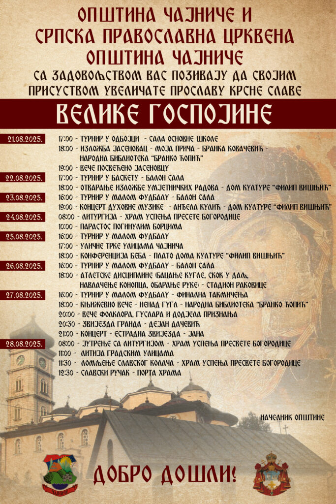 Програм обиљежавања Великогоспојинских свечаности 2025.године у Чајничу
